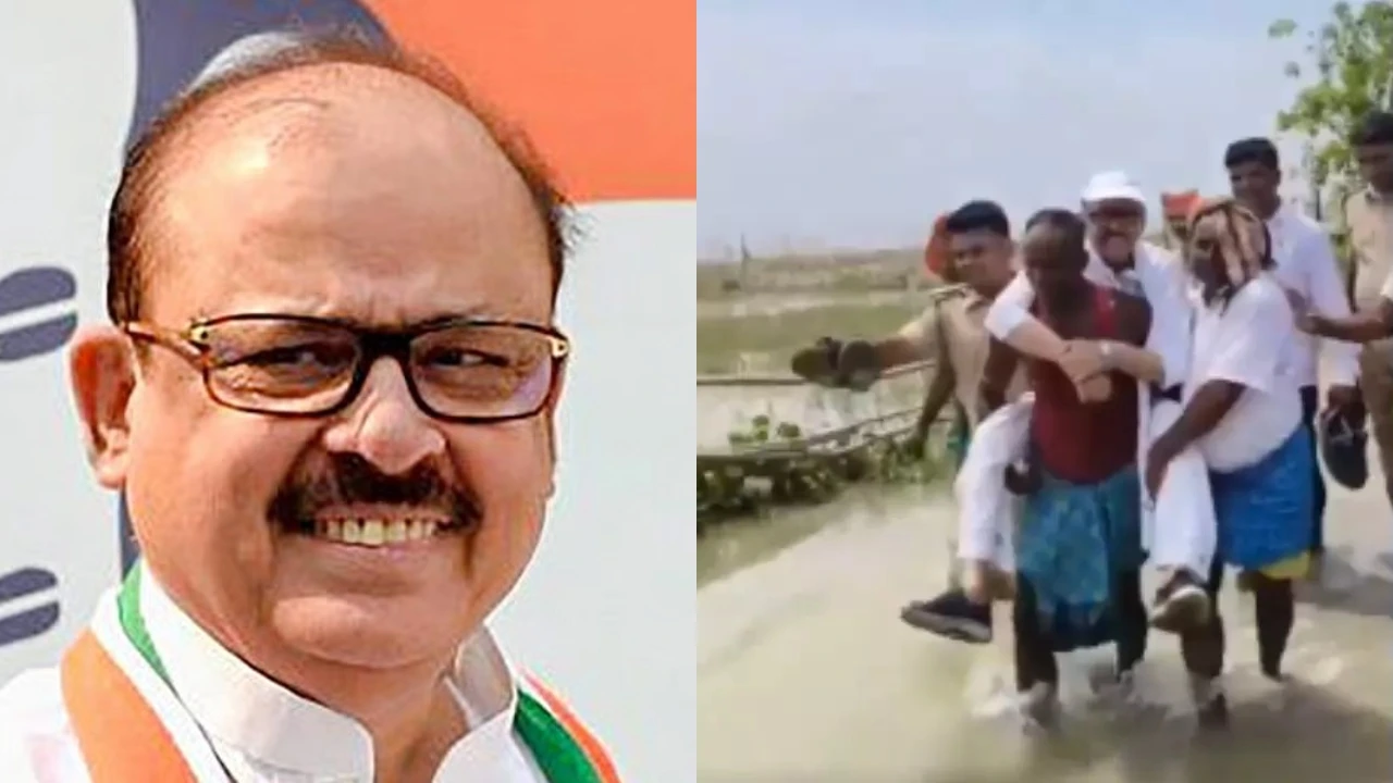 इस मुस्लिम सांसद की नवाबी देखिए, युवक के कंधे पर बैठ कर लिया बाढ़ का जायजा, यूजर...